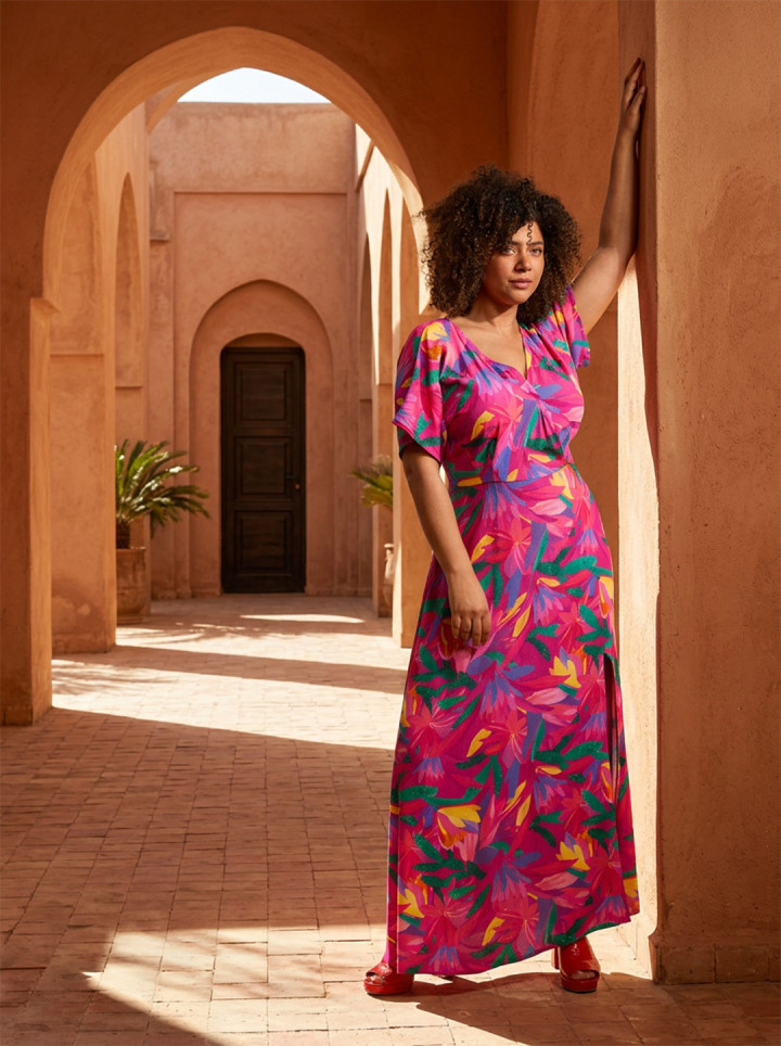 Estelle mesure 1m72, ses mensurations : tour de poitrine 97cm / tour de taille 80cm / tour de hanches 108cm. Elle porte la taille 40