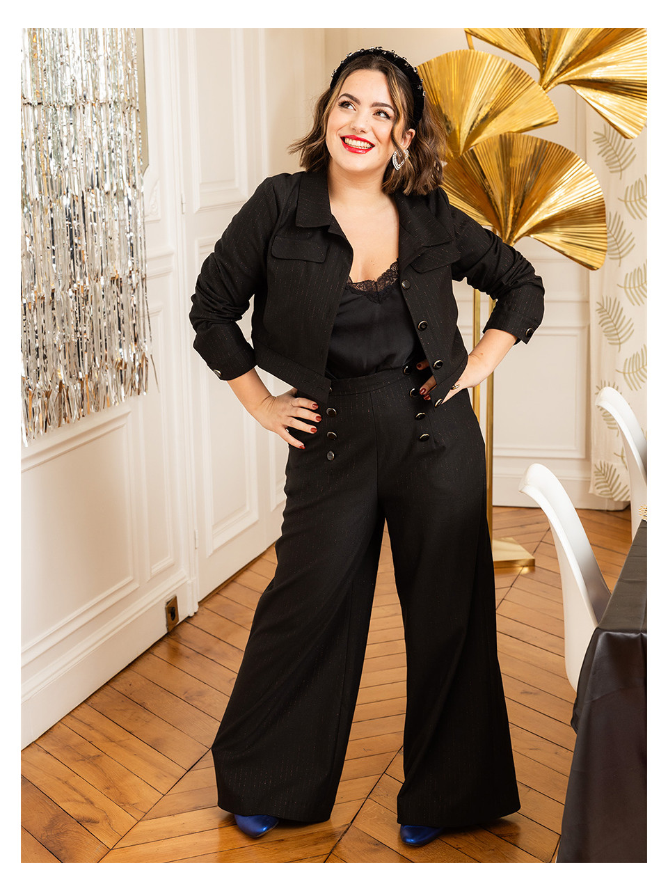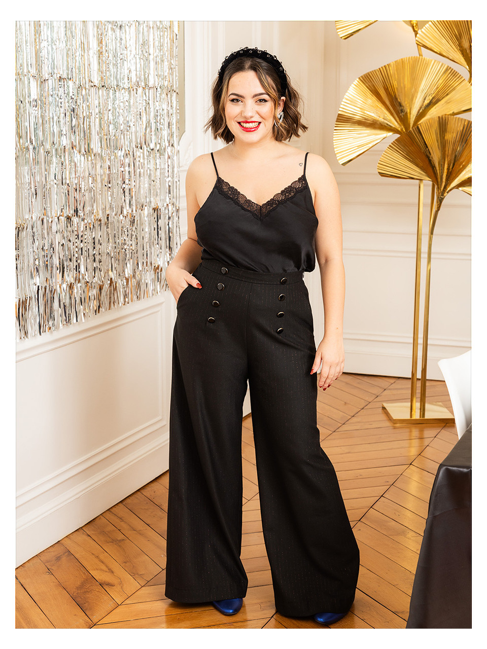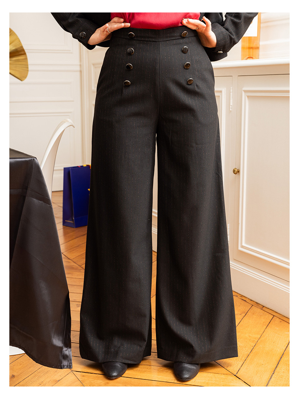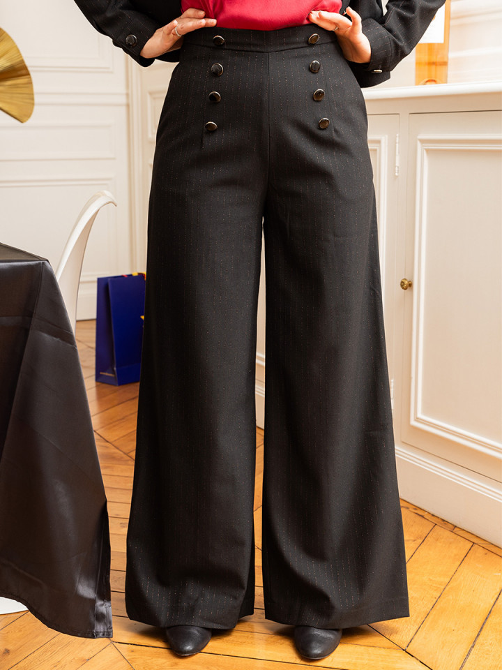 • Pantalon à pont taille haute avec de jolis boutons ronds décoratifs