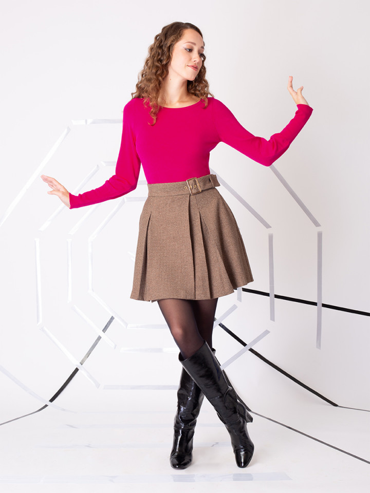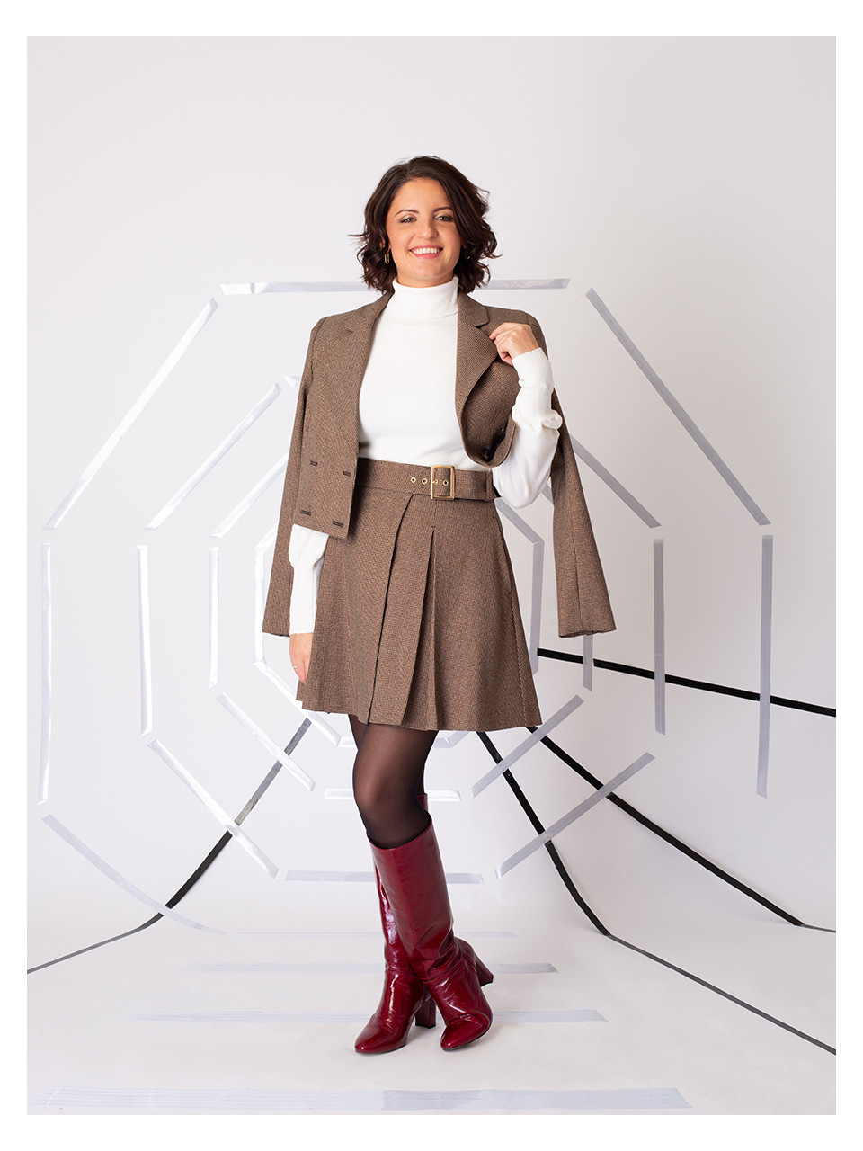 Salomé mesure 1m71, ses mensurations : tour de poitrine 87cm / tour de taille 70cm / tour de hanches 84cm. Elle porte la taille 36