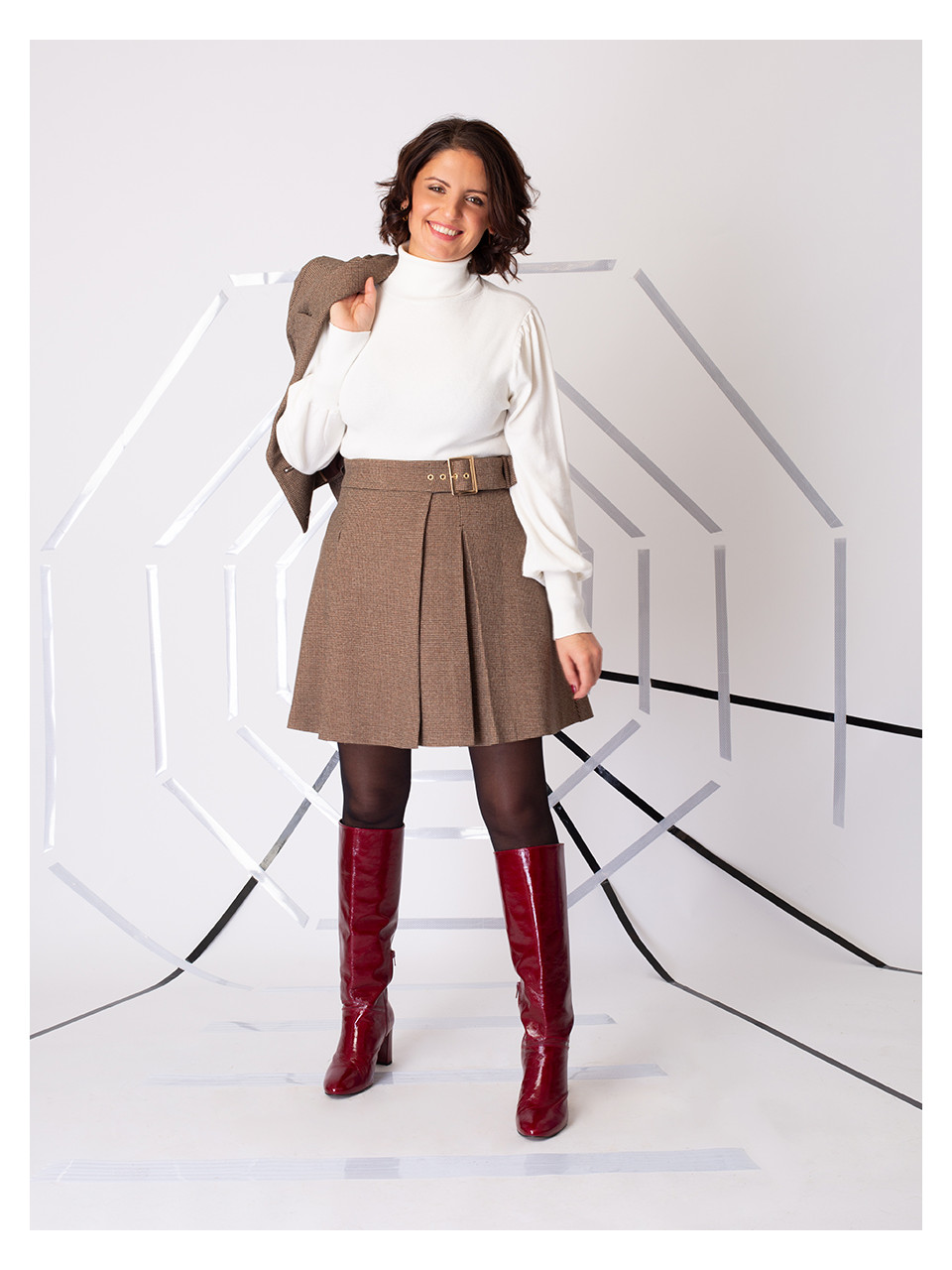 Salomé mesure 1m71, ses mensurations : tour de poitrine 87cm / tour de taille 70cm / tour de hanches 84cm. Elle porte la taille S