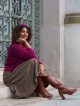 Estelle mesure 1m72, ses mensurations : tour de poitrine 97cm / tour de taille 80cm / tour de hanches 108cm. Elle porte la taille M