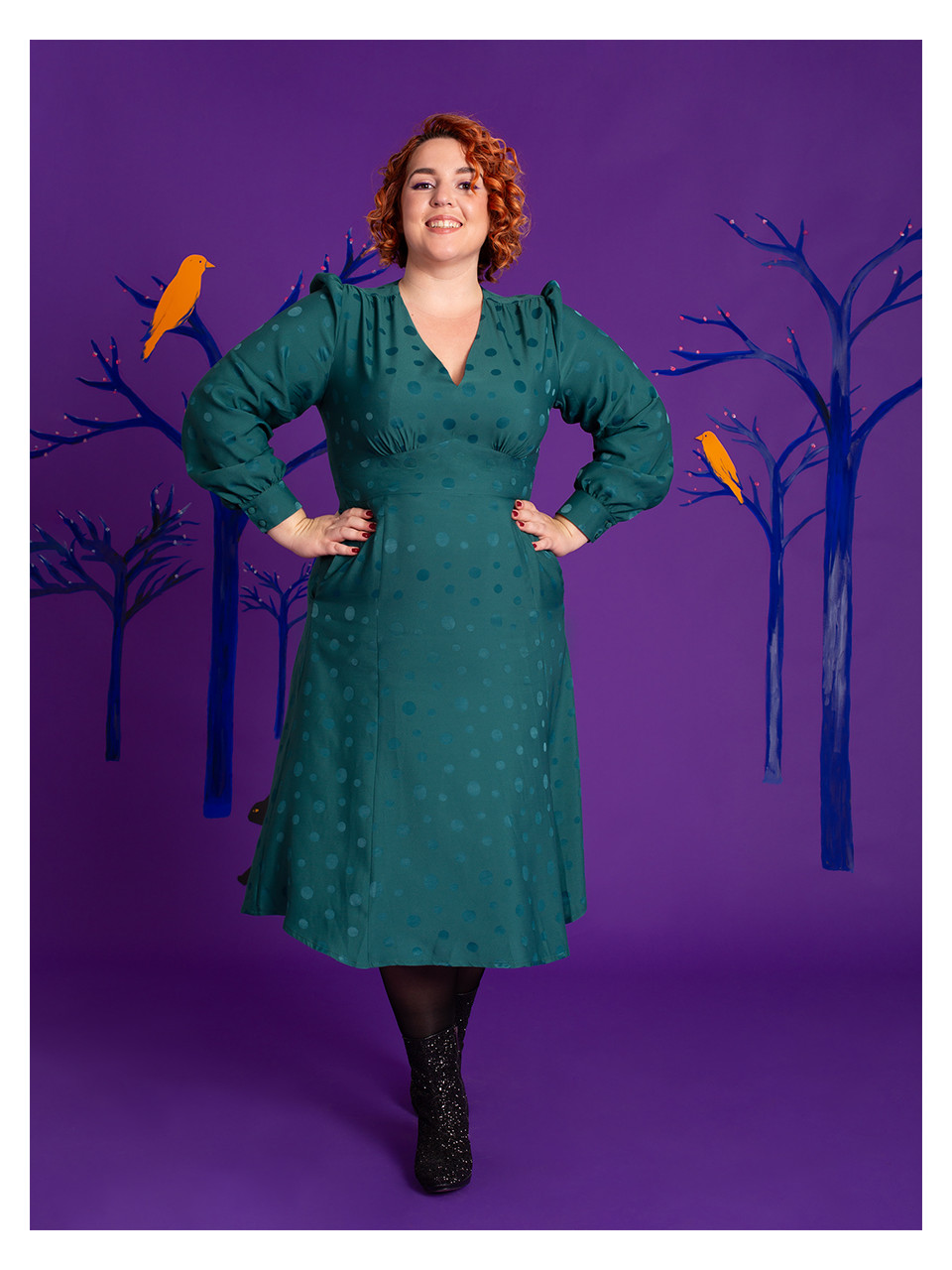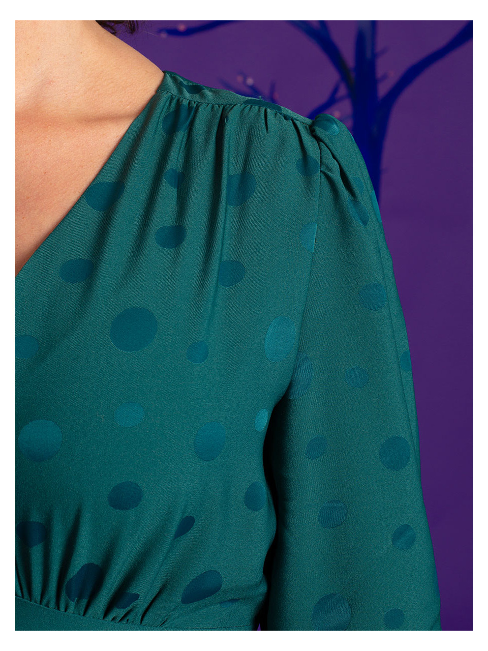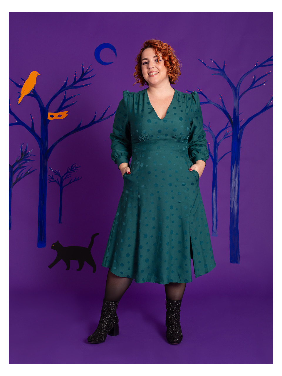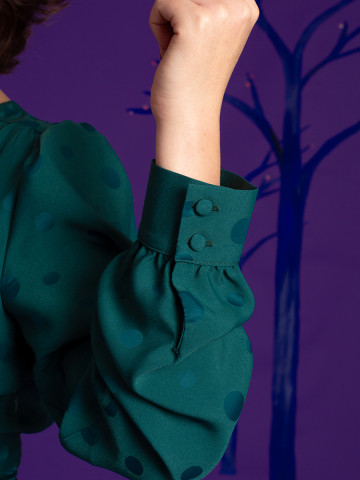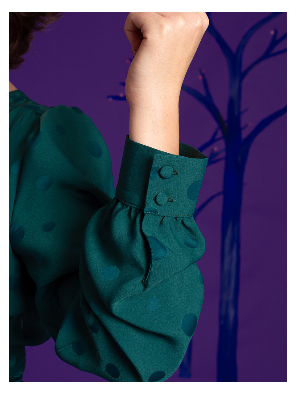 • Manches princesse forme ballon avec travail de fronces sur l'épaule