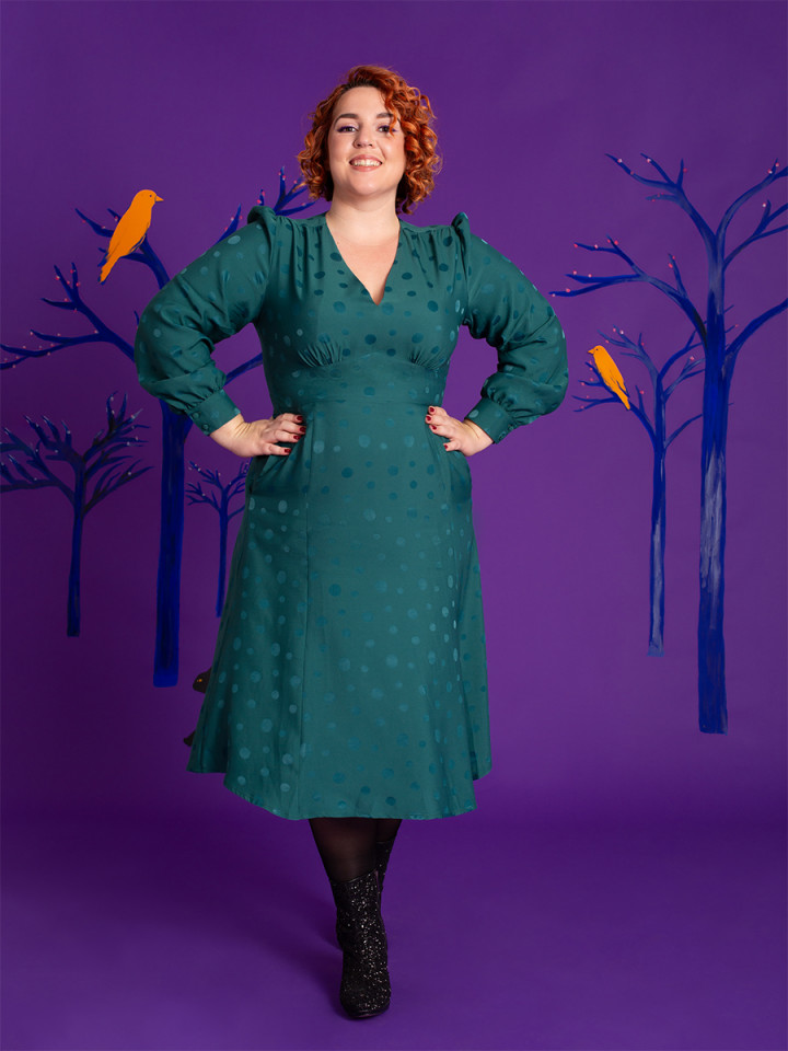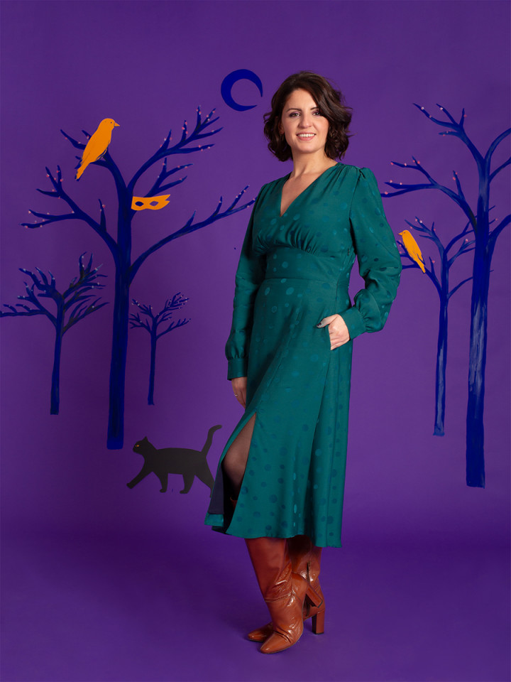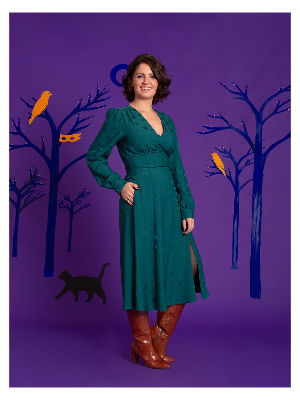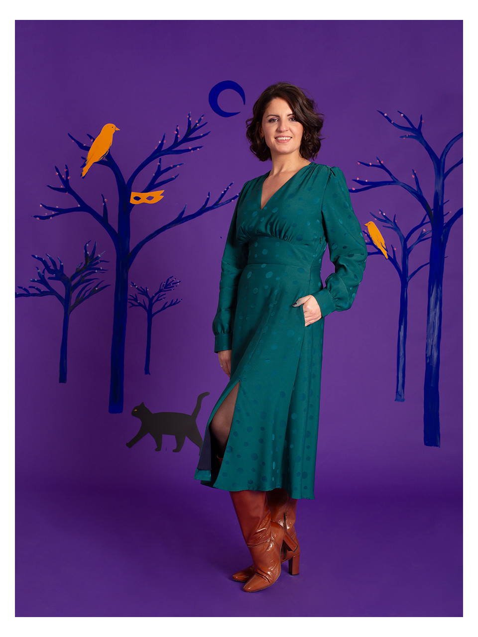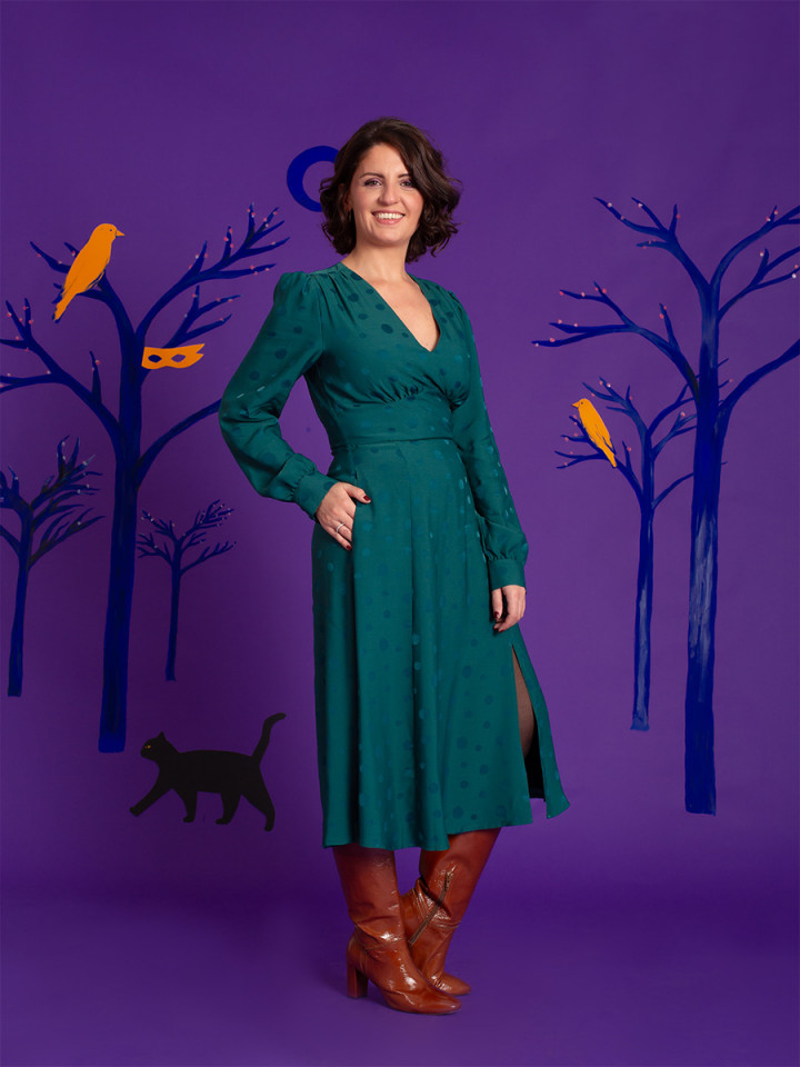• Manches princesse forme ballon avec travail de fronces sur l'épaule