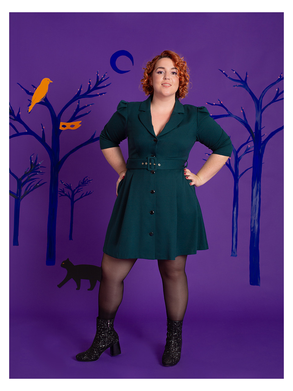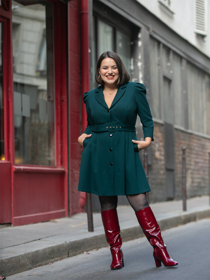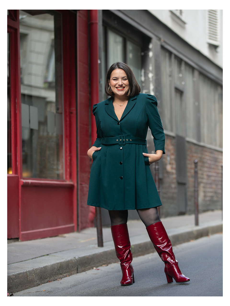 Clara mesure 1m66, ses mensurations : tour de poitrine 107cm / tour de taille 90cm / tour de hanches 118cm. Elle porte la taille 46