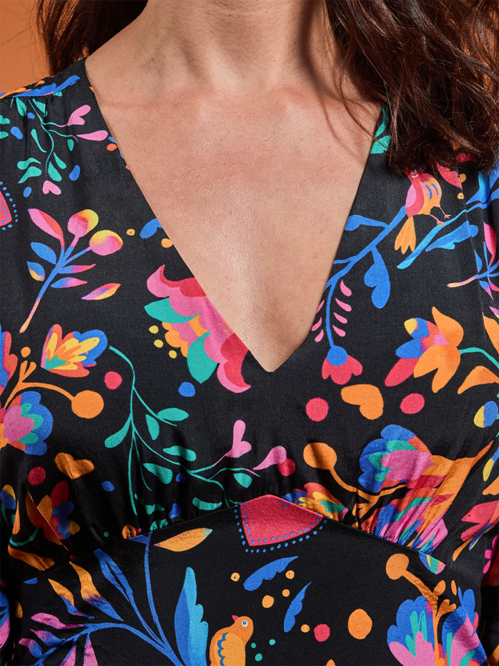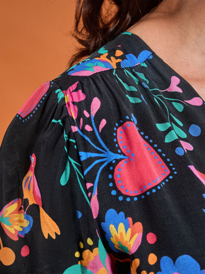 • Détails de petites fronces au niveau des épaules et de la poitrine