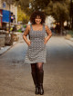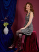 Estelle mesure 1m72, ses mensurations : tour de poitrine 97cm / tour de taille 80cm / tour de hanches 108cm. Elle porte la taille 40