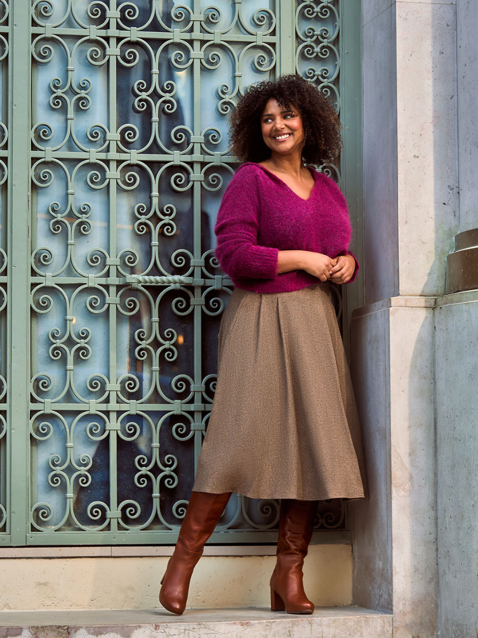 • Jupe midi à plis plats